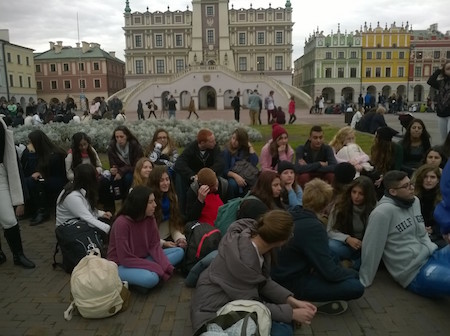 Kolejnym punktem spotkania były warsztaty integracyjne. Odbyły się one w kilku grupach polsko-izraelskich. Praca w grupach prowadzona była przez nauczycielki języka angielskiego: p. M. Adamczuk, p.M. Borowską, p. L.Karwan, p. B. Kowalczyk, p. M. Struk. W czasie warsztatów młodzież szybko przełamała początkową nieśmiałość i w koleżeńskiej atmosferze poznawała swoje zainteresowania, obalała kolejne stereotypy dotyczące obydwu narodów. Po warsztatach poszliśmy na spacer na Starówkę. Przewodnicy z Izraela opowiadali swoim podopiecznym historię Zamościa, historię polsko - żydowską naszego miasta, historię swoich przodków. Warto dodać, że wielu opiekunów młodzieży izraelskiej ma swoje zamojskie "korzenie". Przykładem może być, wspomniana powyżej, pani Dalia Ophir.