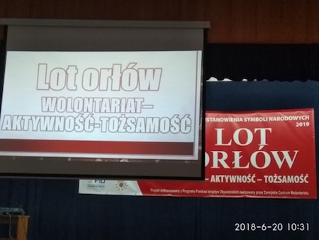 Z inicjatywy harcerzy zwrócono uwagę na tzw. patriotyzm radosny w celu odejścia od patosu i smutku do aktywności i radości. Następnie rozpoczęła się debata pt:” Szanse i bariery w aktywności młodzieży”. Uczniowie wspólnie tworzyli projekt orła, skrzydłami były np.: kreatywność, zdobywanie funduszy, radość z dokonań, komunikatywność, chęć pomocy innym, praca w grupie, a pazurami (demotywatorami) - bierność, egoizm, stereotypy czy lenistwo. Celem spotkania był rozwój wolontariatu jako rozwój aktywności obywatelskiej.