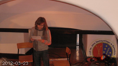 W piątkowe popołudnie zaproszono nas do udziału w niezwykłej grze literackiej. Jej uczestnikami byli zwycięzcy konkursu "Debiut" 2012 oraz publiczność zgromadzona na schodach. Młodzi twórcy prezentowali fragmenty swoich utworów. Wśród nagrodzonych debiutantów byli nasi uczniowie: Wojciech Bikowski, Justyna Kudyk i Kinga Piwińska.