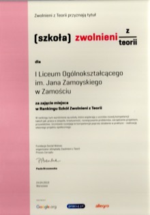 Dzięki zaangażowaniu projektowemu uczniów nasze Liceum znalazło się w rankingu Szkół Zwolnieni z Teorii.