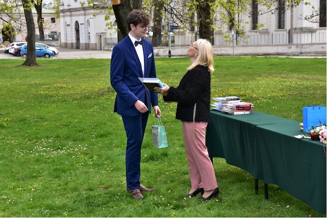 Następnie głos zabrał były przewodniczący, a jednocześnie absolwent szkoły - Karol Ostasz, mówiąc: „Przez ostatnie 3 lata przygotowywaliśmy się do jednego z najważniejszych egzaminów w naszym życiu- egzaminu dojrzałości. Jestem bardzo wdzięczny wychowawcom oraz nauczycielom za cały wkład w naszą edukację i wychowanie, rodzicom za wsparcie, a wam, koleżanki i koledzy za świetną, unikalną i niepowtarzalną atmosferę w naszej szkole. Wiem, że te chwile już nie wrócą, po maturze każdy pójdzie w swoją stronę i chociaż nasze drogi się rozchodzą, rad jestem ,że dane mi było was poznać.”