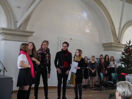 20 grudnia, w piątkowe przedpołudnie w Sali Kolumnowej odbyło się uroczyste spotkanie wigilijne dla uczniów i wszystkich pracowników naszej szkoły. Życzenia świąteczne złożyła p. Dyrektor Bożena Krupa, a następnie uzdolnionej młodzieży zostały wręczone stypendia im. Bolesława Hassa za szczególne osiągnięcia edukacyjne w minionym roku szkolnym. Otrzymało je kilkudziesięciu naszych uczniów, w tym absolwenci szkół podstawowych i gimnazjów, którzy zostali finalistami i laureatami konkursów kuratoryjnych. Przyznano również trzy stypendia ufundowane przez p. Antoniego Pawluka za działalność artystyczną.