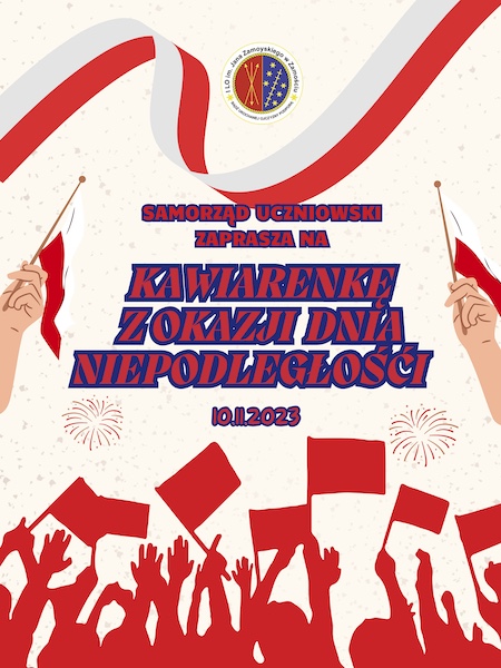 10 listopada będziemy świętować Dzień Odzyskania Niepodległości i z tej okazji serdecznie zapraszamy wszystkich uczniów, nauczycieli i dyrekcję szkoły na kawiarenkę, która odbędzie się przy schodach pod aulą!