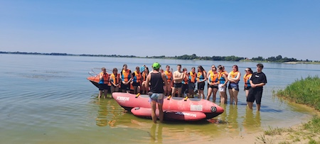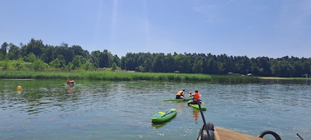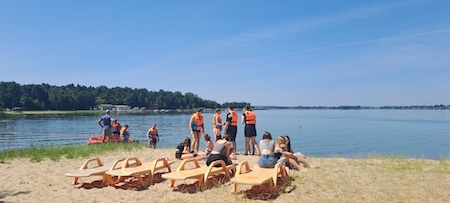 Rozpoczęliśmy od turystyki aktywnej – każdy miał możliwość przepłynięcia się motorówką, a wspólna integracja na deskach SUP dostarczyła wielu emocji i radości. Pan Maciej Kokoszka przypomniał zasady bezpiecznego zachowania nad wodą oraz podzielił się swoją pasją – żeglarstwem. Zwieńczeniem dnia było wspólne ognisko i grillowanie kiełbasek.