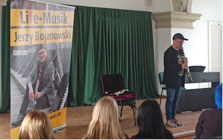W naszym Liceum odbyło się dzisiaj niecodzienne spotkanie. Odwiedził nas pan Jerzy Bojanowski – klarnecista, pianista, na co dzień pracujący w orkiestrze w Magdeburgu. Pan Jerzy przyjechał do Zamościa, by wystąpić w koncercie poświęconym W. A. Mozartowi wraz z Orkiestrą Symfoniczną im. Karola Namysłowskiego. Muzyk znalazł jednak czas, by odwiedzić swoją dawną szkołę.