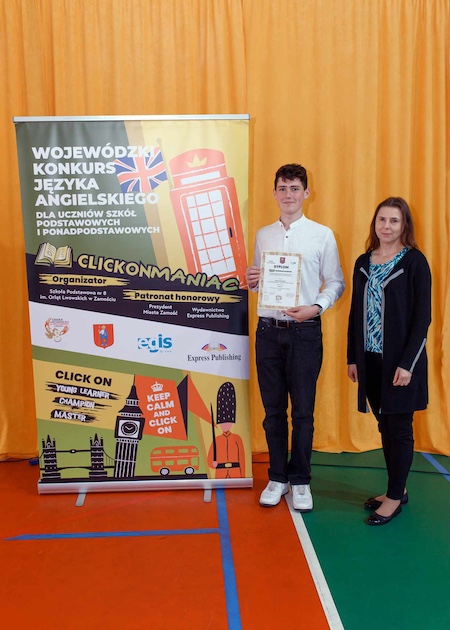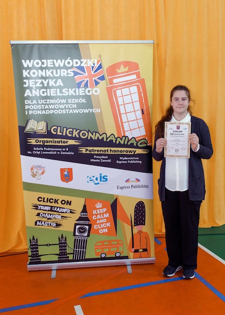 Uroczyste podsumowanie i rozdanie nagród w Wojewódzkim Konkursie Języka Angielskiego CLICKONMANIAC odbyło się 14 czerwca 2024 r. w Szkole Podstawowej nr 8 w Zamościu.