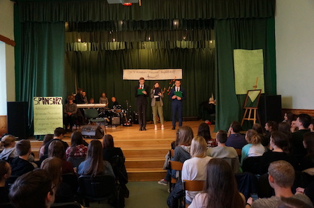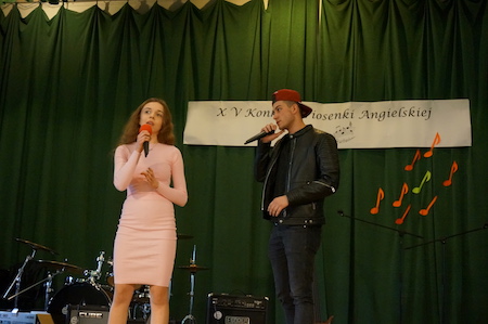Konkurs w języku angielskim prowadzili Kinga Zarębska, Krystian Petz i Michał Waśko. Konferansjerzy przygotowywali się pod kierunkiem Pani Urszuli Kusz.