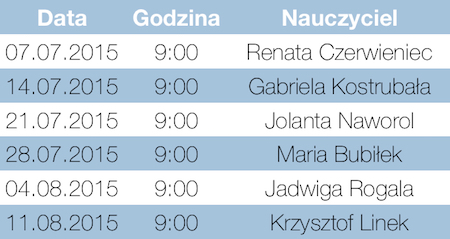 Informacje o ewentualnych zmianach terminów i/lub godzin spotkań będą pojawiały się na stronie szkoły.