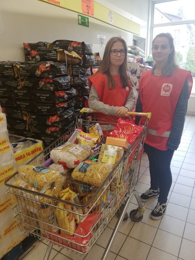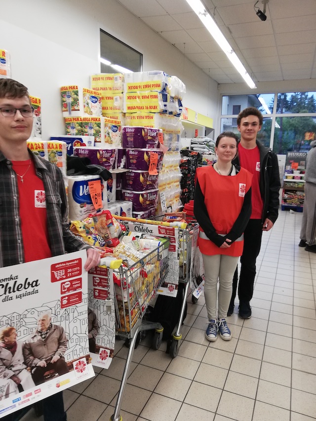 Koło Caritas działające przy naszej Szkole włączyło się czynnie w akcję Caritas Polska Diecezji Zamojsko-Lubaczowskiej zorganizowaną pod hasłem „Kromka chleba dla sąsiada”. 20 – 21 września 2019 r. (piątek i sobota) nasi wolontariusze przeprowadzili bardzo owocną zbiórkę żywności w dwóch sklepach sieci Biedronka na terenie Zamościa (ul. Sadowa, ul. Peowiaków). Celem działania było uwrażliwienie społeczeństwa szczególnie na położenie osób starszych i wsparcie ich w przeżywaniu codzienności. Zebrane produkty będą przekazane przez Parafialne Zespoły Caritas najbardziej potrzebującym seniorom oraz ludziom samotnym.