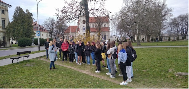 Następnie pani przewodnik Agnieszka Linek poprowadziła uczniów szlakiem, który zapewne wielokrotnie przemierzał poeta, zwracając uwagę na miejsca szczególnie mu bliskie.