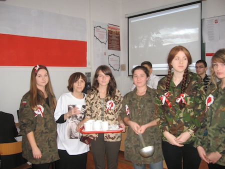 Cała społeczność Szkoły była zaproszona na listopadowe biesiadowanie przy grochówce. Wspólnie śpiewano pieśni patriotyczne, oglądano prezentację multimedialną poświęconą postaciom Józefa Piłsudskiego, Romana Dmowskiego i Ignacego Paderewskiego, dyskutowano o wydarzeniach z roku 1918, a także o tym czym jest niepodległość dla nas, współczesnych Polaków.