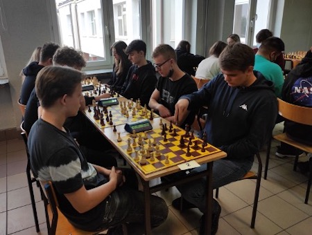 W środę (17 listopada) w III LO w Zamościu odbyły się zawody w szachach drużynowych dziewcząt i chłopców na szczeblu miejskim. Wzięła w nich udział nasza reprezentacja w składzie; Piotr Belina (3BG), Mikołaj Chudy (2A), Lena Gałan (1F), Eryk Korga (3BG), Kacper Mazurek (3A) pod opieką pana profesora Emila Rafalskiego.