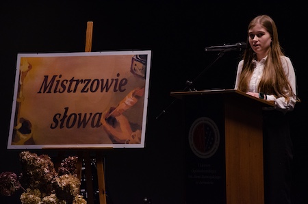 Co prawda popełnianie błędów językowych nie jest karalne, ale posługiwanie się poprawną polszczyzną świadczy o naszej kulturze osobistej, wyczuciu językowym i erudycji. Mogliśmy się o tym przekonać podczas finałowej części konkursu polonistycznego „Mistrzowie słowa”, który odbył się w naszej szkole 5 marca. Do tej części konkursu zakwalifikowało się czternaścioro uczniów, siedmioro ze szkół podstawowych i siedmioro z naszego liceum. Zadaniem każdego z uczestników było wygłoszenie mowy na wybrany temat: Realny czy wirtualny? Czy świat bez mediów społecznościowych byłby lepszy? Jakie jest, Twoim zdaniem, największe wyzwanie XXI wieku, z którym będzie musiało zmierzyć się młode pokolenie? Pieska, kocia, końska… frazeologia. Przeanalizuj na wybranych przykładach zwierzęcą frazeologię w języku polskim.