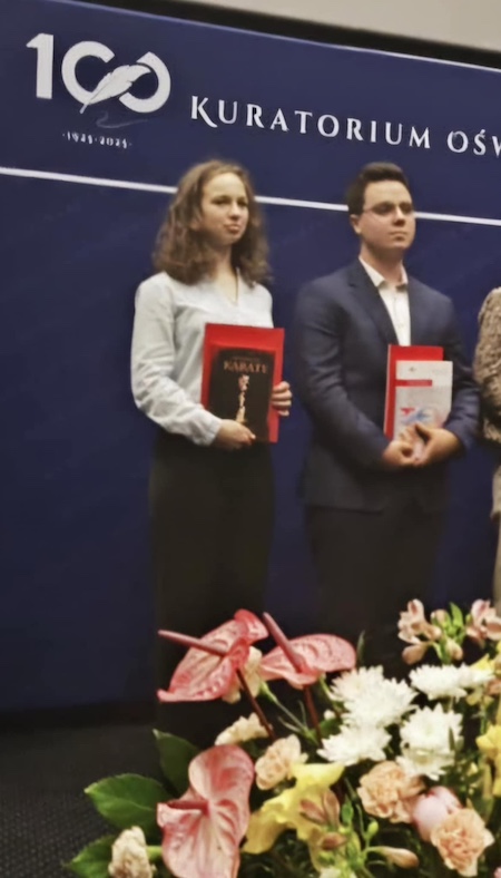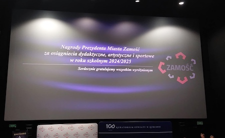 30 maja w Centrum Kultury Filmowej "Stylowy" w Zamościu miało miejsce uroczyste wręczenie Nagród Przezydenta Miasta Zamość za osiągnięcia dydaktyczne i sportowe wroku szkolnym 2024/25. Za osiągnięcia w konkursach chemicznych nagrodzony został nasz absolwent Jakub Pacaj, za osiągnięcia sportowe nagrodzono Emilię Hunkiewicz z klasy 3a. Serdecznie gratulujemy!