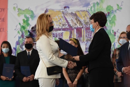 Natomiast W Biłgoraju, gdzie odbywały się uroczystości regionalne pani Mirosława Podhajny odebrała Nagrodę Ministra z rąk szefa resortu edukacji p. Przemysława Czarnka.