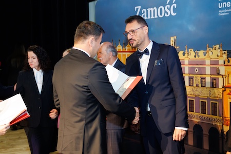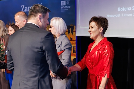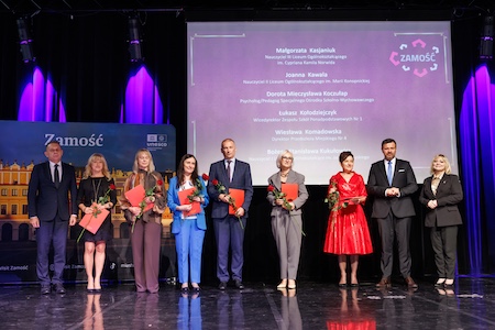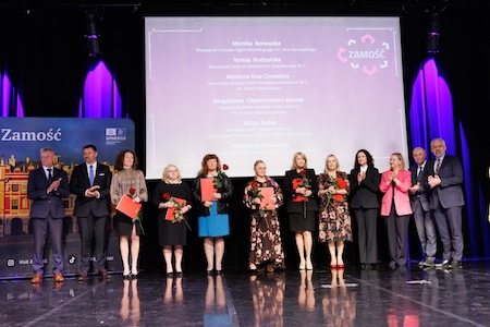 W dniu 17 października Prezydent Miasta Zamość Pan Rafał Zwolak docenił nauczycieli naszej szkoły za wybitne osiągnięcia dydaktyczne, wychowawcze i społeczne. Nagrodę otrzymali: Pani Monika Borowska, Pani Bożena Kukułowicz i Pan Mariusz Farion. Gratulujemy i życzymy dalszych sukcesów w pracy z uczniami.