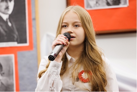 Następnie wysłuchaliśmy pieśni „Wojenko, wojenko” w wykonaniu Julii Kawałko oraz „Uwierz Polsko” w wykonaniu Igi Grątkowskiej.