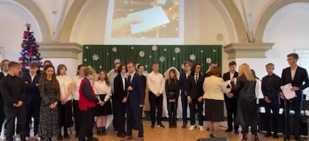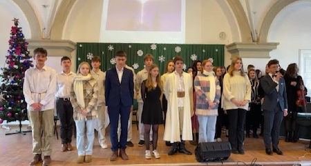 21 grudnia 2023 r. społeczność I LO licznie zgromadziła się w auli Szkoły i on-line przed monitorami, by wspólnie rozpocząć świętowanie. Na początku spotkania Pani Dyrektor Agnieszka Kowal wręczyła stypendia im. Bolesława Hassa najzdolniejszym uczniom, a następnie podczas części artystycznej pochyliliśmy się nad sposobem przeżywania Wigilii Bożego Narodzenia w różnych okresach historii naszej Ojczyzny.