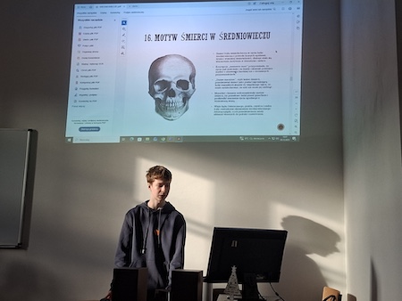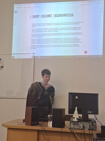 Jedna z ostatnich lekcji języka polskiego, która odbyła się 5 grudnia, zamieniła się w fascynującą podróż w czasie. Wszystko za sprawą uczniów klasy 1A - Bartłomieja Sagana i Krzysztofa Górnika, którzy przygotowali wyjątkową prezentację o epoce wieków średnich.