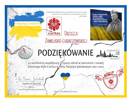 Dyrektor Caritas Diecezji Zamojsko-Lubaczowskiej przesłał podziękowanie za wszelkie działania podejmowane przez Koło Caritas działające w naszej szkole.