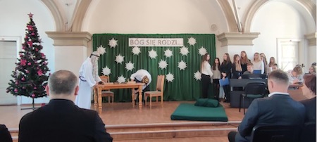 Ciąg dalszy świętowania w naszej Szkole zaplanowany jest na czwartek - 22 grudnia. Odbędą się wtedy klasowe spotkania wigilijne, powtórzony będzie spektakl jasełkowy, a uczniowie złożą sobie życzenia i wypełnią pałacowe wnętrza wspólnie śpiewanymi kolędami.
