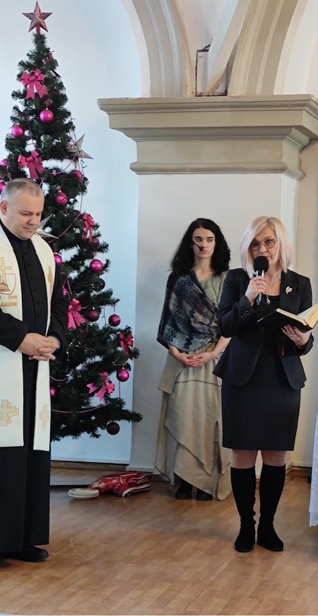 Po wspólnym odśpiewaniu tradycyjnej kolędy Pani Dyrektor Bożena Krupa odczytała Ewangelię o Bożym Narodzeniu, a Proboszcz Parafii Katedralnej, ks. Robert Strus, poświęcił przygotowane opłatki i przewodniczył modlitwie zebranych.