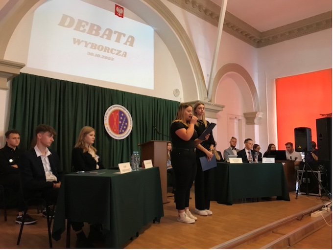 W dniu 30 października 2023 roku odbyła się szkolna debata kandydatów na przewodniczącego Samorządu Uczniowskiego. Tegoroczni kandydaci to Weronika Kudyk (2a), Filip Trześniewski (3a), Iza Kołodziej (3b), Wojtek Wilczyński (3d).
