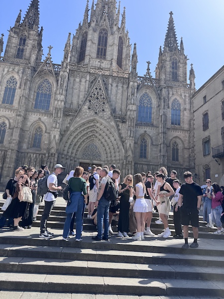 Spacerowaliśmy po Ciutat Vella, odkrywając La Ramblę, Plaça Reial, teatr Liceu, kolorowy targ Mercat de la Boqueria, Plaça de Catalunya oraz modernistyczną dzielnicę Quadrat d’Or. Podziwialiśmy również Katedrę Barcelony oraz Plaça del Rei. Na koniec dnia przejechaliśmy metrem pod słynną Bazylikę Sagrada Família, której monumentalna bryła na długo zostanie w naszej pamięci.