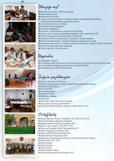 Drodzy Ósmoklasiści - Przyszli Licealiści, obejrzyjcie film o szkole, wybierzcie dla siebie profil klasy, złóżcie wniosek o przyjęcie do szkoły.