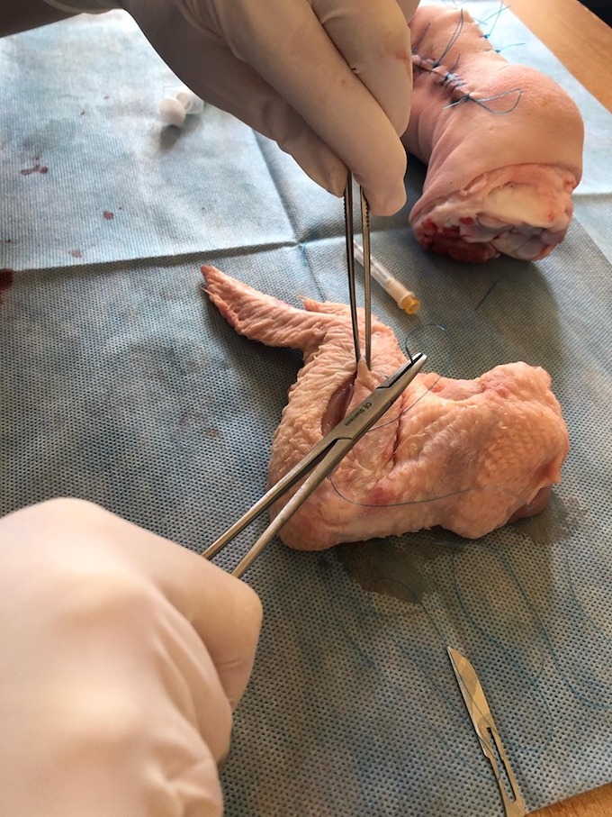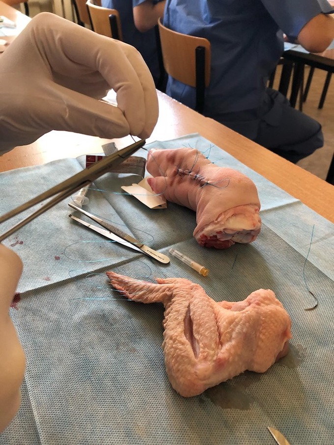 5. Zapoznają się z narzędziami chirurgicznymi, igłami oraz metodą zakładania szwów.