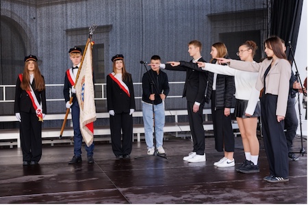 Ceremonię rozpoczęła Pani Dyrektor Agnieszka Kowal, witając uczniów, nauczycieli oraz zaproszonych gości. Następnie przewodniczący Samorządu Uczniowskiego, Patryk Drogoszewski, odczytał rotę ślubowania, po czym przedstawiciele klas pierwszych złożyli przyrzeczenie na sztandar szkoły, zobowiązując się do sumiennej nauki, odpowiedzialności oraz troski o dobre imię Liceum.