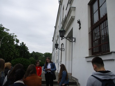 Spacer zakończył się przy budynku Akademii. Tutaj przypomnieliśmy sobie osobę fundatora Jana Zamoyskiego, wybitnego polityka, człowieka gruntownie wykształconego i doceniającego rolę edukacji. Omówiona została organizacja szkolnictwa w XVI w. oraz ważna rola języków klasycznych w kulturze.