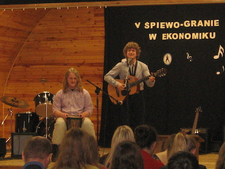 5 marca utalentowani muzycznie młodzi ludzie ze szkół gimnazjalnych i ponadgimnazjalnych spotkali się w Ekonomiku na V „Śpiewo-Graniu”. Publiczność i jury mogli posłuchać różnorodnej muzyki i podziwić młode talenty. Wyróżnienie otrzymał nasz zespół „Lekko Niepoprawni” w składzie: Cezary Budzaj i Kuba Zimon.
