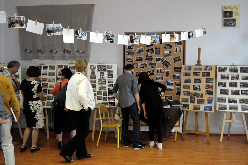 Drugi dzień Jubileuszu upłynął pod znakiem spotkań towarzyskich. Od godzin porannych gmach Szkoły został oddany do dyspozycji Absolwentów. Mogli Oni obejrzeć wystawy fotografii, karykatur profesorów, najstarszych zbiorów bibliotecznych, zajrzeć do kronik szkolnych i klasowych, obejrzeć zdjęcia i materiały audiowizualne dokumentujące życie Szkoły itd.