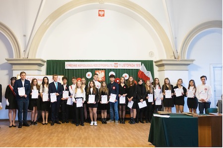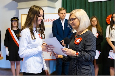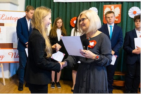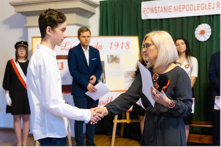 Nasi najzdolniejsi uczniowie mieli szczególny powód do radosnego świętowania Dnia Odzyskania Niepodległości, ponieważ podczas uroczystej akademii, otrzymali od pani Dyrektor dyplomy poświadczające przyznanie Stypendiów im. Bolesława Hassa.