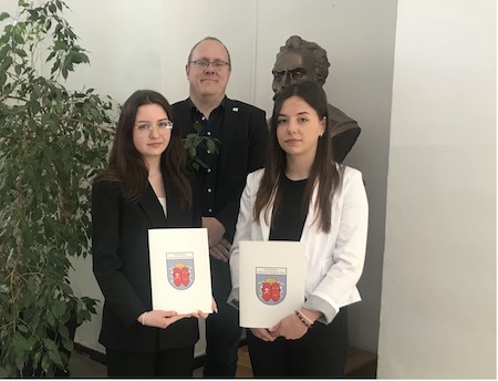 W dniu wczorajszym 09.05.2023 r. mieliśmy przyjemność gościć w naszej szkole dr Marka Przybylskiego, który wręczył nagrody oraz listy referencyjne naszym dwóm tegorocznym maturzystkom Paulinie Groch i Weronice Macieszy za zajęcie 3 miejsca w Ogólnopolskim Konkursie Praca Organiczna 2.0. organizowanym przez Fundację Zakłady Kórnicke. Nagrodą w konkursie jest roczne stypendium studenckie.
