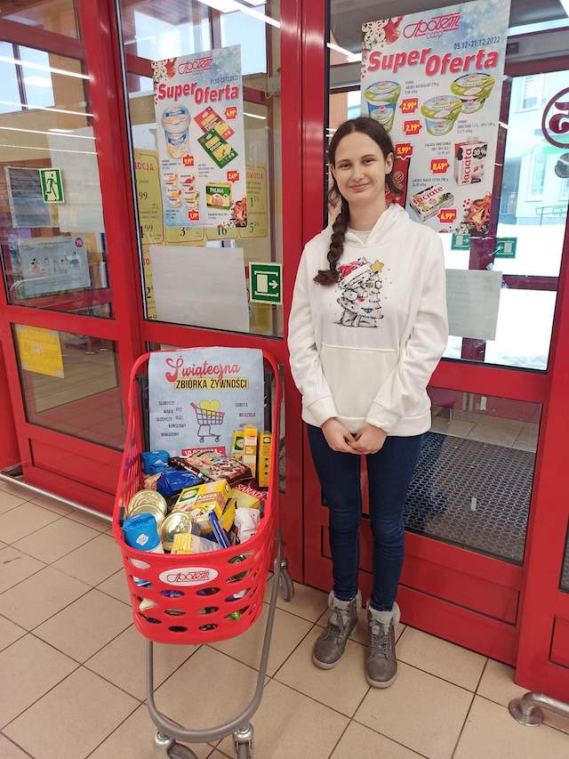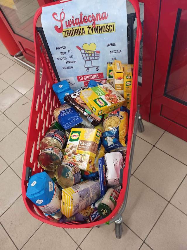 10 i 11 grudnia 2022 r. w sieci sklepów PSS Społem „Robotnik” w Zamościu oraz w sklepie Euro w Zawadzie i Wielączy Stowarzyszenie „Krok za krokiem” w Zamościu przeprowadziło Świąteczną Zbiórkę Żywności. Przedsięwzięcie wspierali wolontariusze z I Liceum Ogólnokształcącego w Zamościu, którzy poświęcając swój czas pomagali w zbiórce, zachęcając kupujących do przekazania żywności na potrzeby polskich i ukraińskich rodzin osób z niepełnosprawnością. Udało się zebrać produkty spożywcze z długim terminem ważności o łącznej wadze 1460 kg. Wszystkie zostały przekazane potrzebującym - w ten sposób zwykła paczka makaronu, kilogram cukru, czekolada… zmienią czyjeś życie na lepsze.