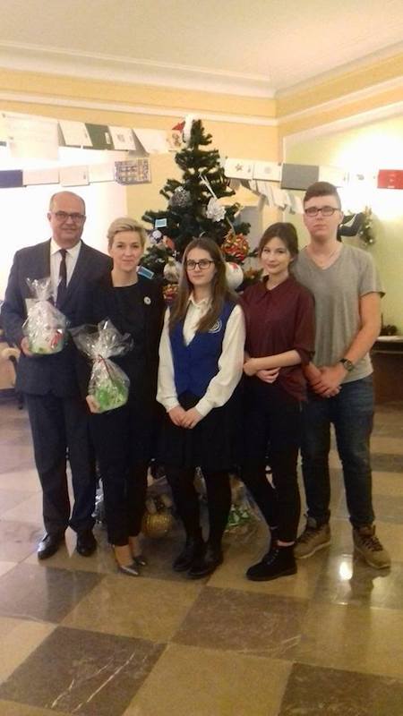 Z okazji zbliżających się świąt Bożego Narodzenia przedstawiciele samorządu szkolnego odwiedzili siedziby: Urzędu Miasta, Wydziału Oświaty i Sportu, Tygodnika Zamojskiego oraz Kroniki Tygodnia. Złożyli życzenia świąteczne i wręczyli symboliczne prezenty wykonane przez Sekcję Artystyczną.
