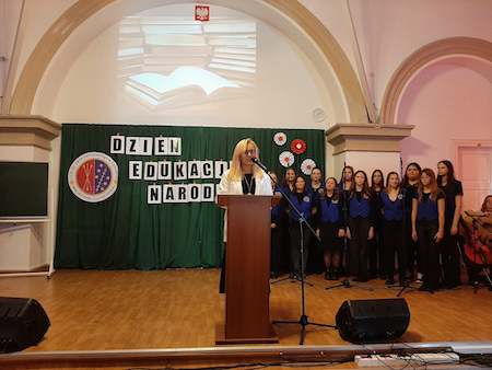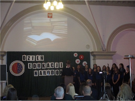 Na zakończenie uroczystości nasza utalentowana młodzież przedstawiła spektakl „Autorka paru wierszy”, który powstał pod opieką tercetu polonistycznego: p. M. Bikowskiej, p. M. Lis i p. P. Linka, z udziałem chóru przygotowanego przez p. Katarzynę Kowanek. Opiekę nad techniczną realizacją przedsięwzięcia sprawował p. Paweł Biedula.