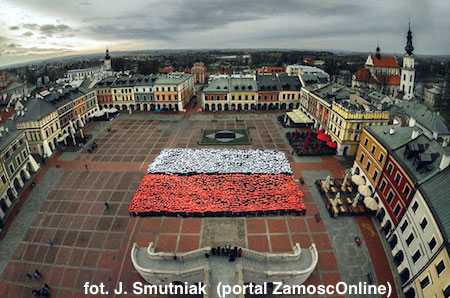 Świętowanie rozpoczęliśmy już 9 listopada włączając się utworzenie „Żywej flagi” na zamojskim Rynku Wielkim.