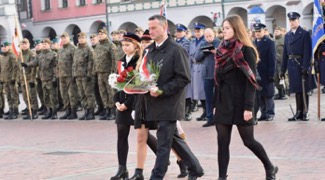 Następnie na Rynku Wielkim rozpoczęła się manifestacja patriotyczna. W programie uroczystości znalazło się przemówienie prezydenta Zamościa, p. Andrzeja Wnuka, który przypomniał o testamencie marszałka J. Piłsudskiego i potrzebie budowania przez Polaków silnego i zintegrowanego społeczeństwa. W dalszej kolejności miał miejsce apel poległych, oddanie salwy honorowej, złożenie wieńców przed tablica upamiętniającą pobyt w Zamościu marszałka J. Piłsudskiego, a na końcu odbyła się defilada wojskowa z udziałem pocztów sztandarowych i służb mundurowych, biorących udział w upamiętnieniu tego Święta.