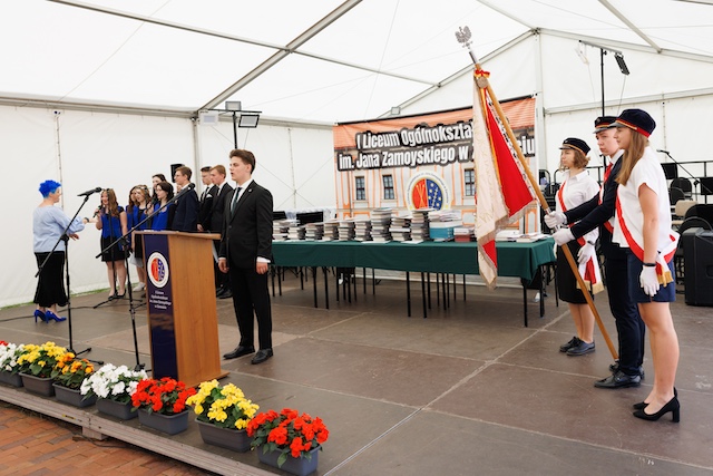 Spotkanie na dziedzińcu Szkoły zakończyło się wykonaniem autorskiej piosenki uczniów I LO „W Pierwszym spełnię swoje wielkie sny”.
