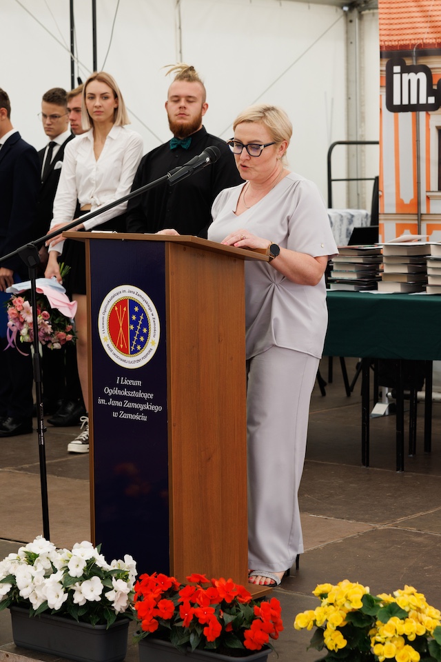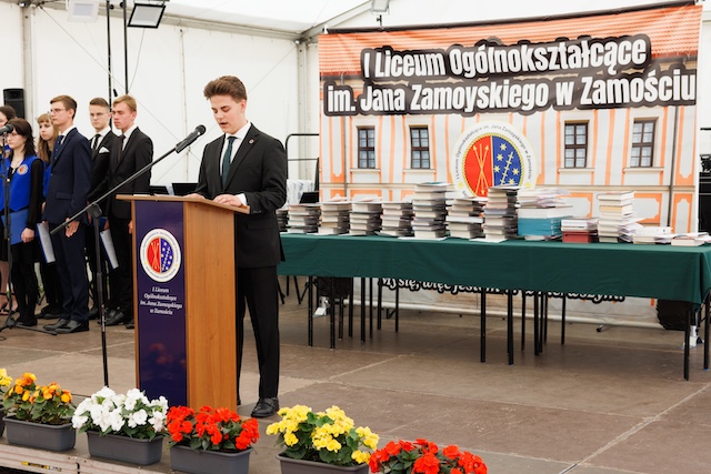 Dalsza część obchodów miała miejsce na dziedzińcu historycznej Akademii Zamojskiej. Po wprowadzeniu sztandaru Szkoły i odśpiewaniu hymnu państwowego przewodniczący Samorządu Uczniowskiego, Wojciech Wilczyński, przywitał zebranych, krótko podsumował całoroczną pracę, wszystkim pogratulował i życzył udanych wakacji.