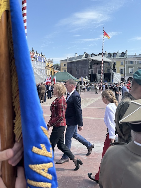 3 maja 2025 roku społeczność I Liceum Ogólnokształcącego im. Jana Zamoyskiego w Zamościu z dumą uczestniczyła w miejskich uroczystościach upamiętniających 234. rocznicę uchwalenia Konstytucji 3 Maja.