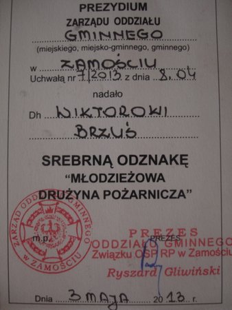 Wiktor Brzuś to osoba, której chyba nikomu nie trzeba przedstawiać. Znamy go wszyscy ze szkolnych uroczystości, podczas których zajmuje się obsługą sprzętu, znają go w szkolnym wolontariacie, którego jest aktywnym członkiem. Jednak na tym działalność Wiktora się nie kończy. Wiktor jest dowódcą Młodzieżowych Drużyn Pożarniczych w Płoskiem, od 2008 r. członkiem Zarządu Dowódców Młodzieżowych Drużyn Pożarniczych w Zamościu.