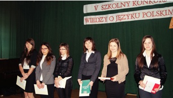 Dnia 7 lutego 2014 roku odbyła się w auli naszego liceum oratorska część V Szkolnego Konkursu Wiedzy o Języku Polskim. Wzięło w niej udział jedenastu uczniów wyłonionych po pisemnym teście: Anna Szawracka z klasy II g, Iwona Traczykiewicz z III a, Dorota Dec z II f, Dominika Kukis z I c, Urszula Lis z III a, Marika Hajduk z I h, Paweł Sadło z II f, Patrycja Ejsmont z II h, Klaudia Siudak z II g, Elżbieta Kwapisz z I j oraz Aleksandra Tomasik z I g. Tematem tegorocznych wystąpień było omówienie różnorodnych sposobów wzbogacania słownictwa.