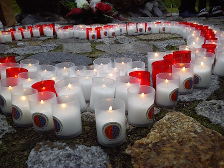 W 73 rocznicę wysiedleń”. W marszu pod Pomnik Dzieci Zamojszczyzny udział wzięło 150 uczniów z klas drugich i trzecich (IIg, IIj, IIIi, Ii, Ie), którzy zapalili światło pamięci w kształcie serca składające się ze 150 biało-czerwonych zniczy.