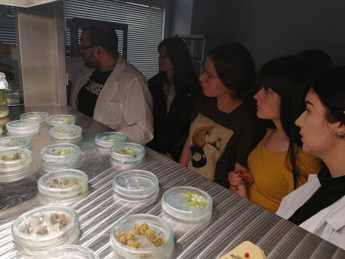 Podczas pierwszego wyjazdu na uczelnię uczniowie wzięli udział w wykładzie dotyczącym zasad i warunków prowadzenia kultur in vitro oraz zapoznali się z wyposażeniem i zasadami pracy w Katedrze Biologii Komórki. Najciekawszym doświadczeniem okazała się praca pod kierunkiem pracowników naukowych. Uczniowie pracowali w sterylnych komorach z laminarnym przepływem powietrza, w których dokonali sterylizacji nasion i założyli własne hodowle roślin in vitro.