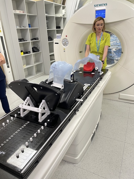 System unieruchomień pacjenta to system, który zawiera podstawki stosowane przy różnych lokalizacjach napromieniania. Pacjent jest na nich układany przed TK do planowania leczenia w pozycji względnie dla niego wygodnej, natomiast stabilnej dla prowadzących leczenie. Pozycja ta ma być odtwarzalna i powtarzana dla danego pacjenta przy każdym napromienianiu na akceleratorze i zapewniać precyzję terapii.