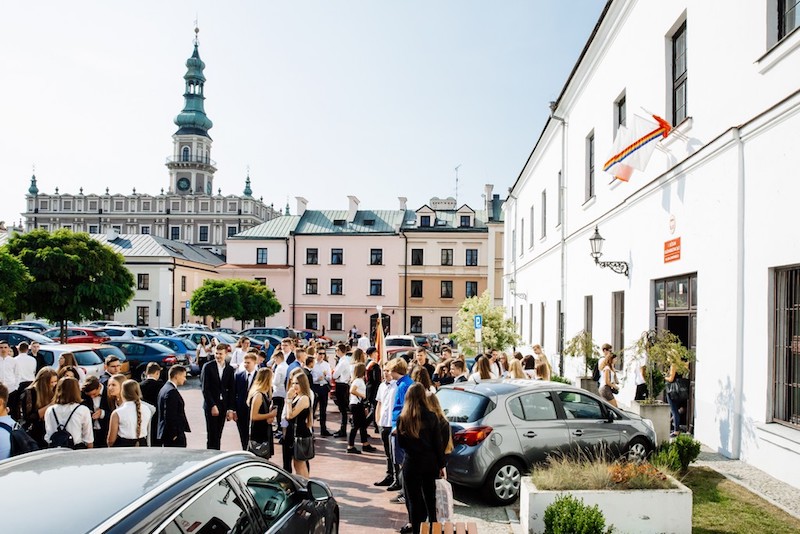 Na naszej uroczystości gościliśmy panią Monikę Żur - dyrektor zamojskiej Delegatury Kuratorium Oświaty w Lublinie, która zabrała głos i przekazała również list od Lubelskiej Kurator Oświaty i Wojewody Lubelskiego oraz panią Agnieszkę Kowal – dyrektor Wydziału Oświaty Miasta Zamość, która pogratulowała świetnych wyników licealistów na tegorocznej maturze i przekazała życzenia od Prezydenta Zamościa. Pani dyrektor Bożena Krupa i wyraziła nadzieję, że nowy rok szkolny będzie owocny i satysfakcjonujący dla nauczycieli, uczniów i ich rodziców. Zwróciła uwagę na to, że w życiu szkolnym ważne są nie tylko osiągnięcia naukowe, ale również życzliwość, uśmiech i przyjazna atmosfera. Szczególnie ciepło przywitani zostali pierwszoklasiści, którzy rozpoczynają naukę w 9 klasach o różnorodnych profilach: matematyczno – fizycznym, informatycznym, ekonomicznym, lingwistycznym, humanistycznym, prawniczym i biologiczno- chemicznym. Po zakończonej uroczystości uczniowie spotkali się ze swoimi wychowawcami.